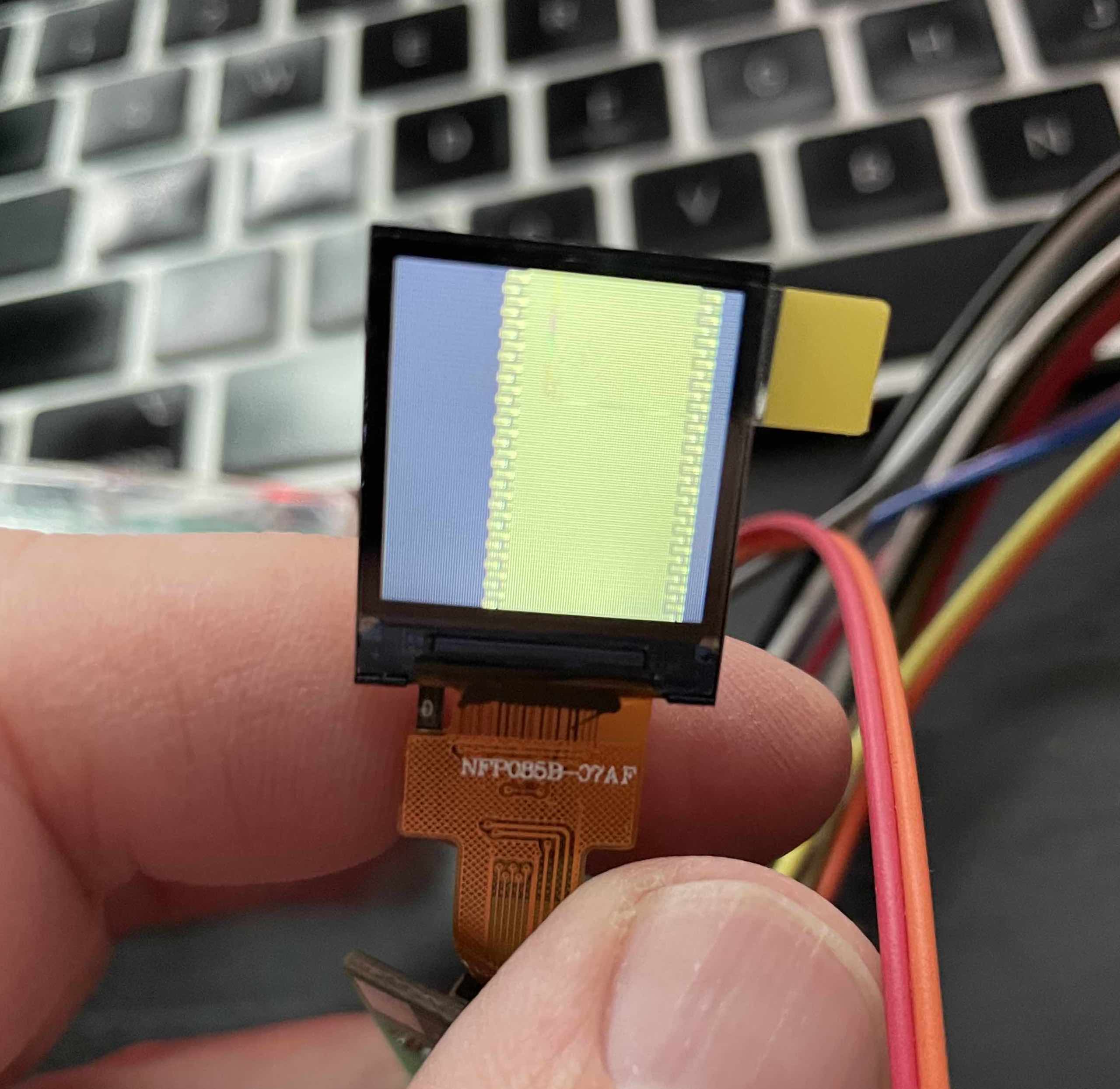 So in my design I put in a connector for the cable. I’m still waiting for parts and the boards, but in the meantime I got an adapter and hooked everything up to a prototyping board. One step closer to the bare components. I’m absolutely delighted that plugging in one of these displays with my circuit layout resulted in a working display. One step closer!